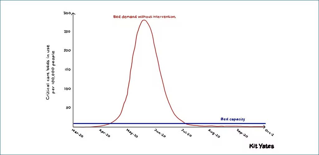 Critical bed capacity falls dramatically below the peak demand without intervention. | Kit Yates