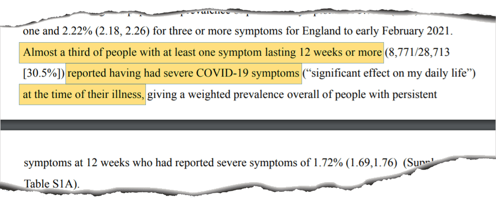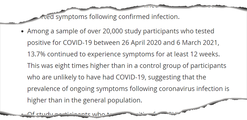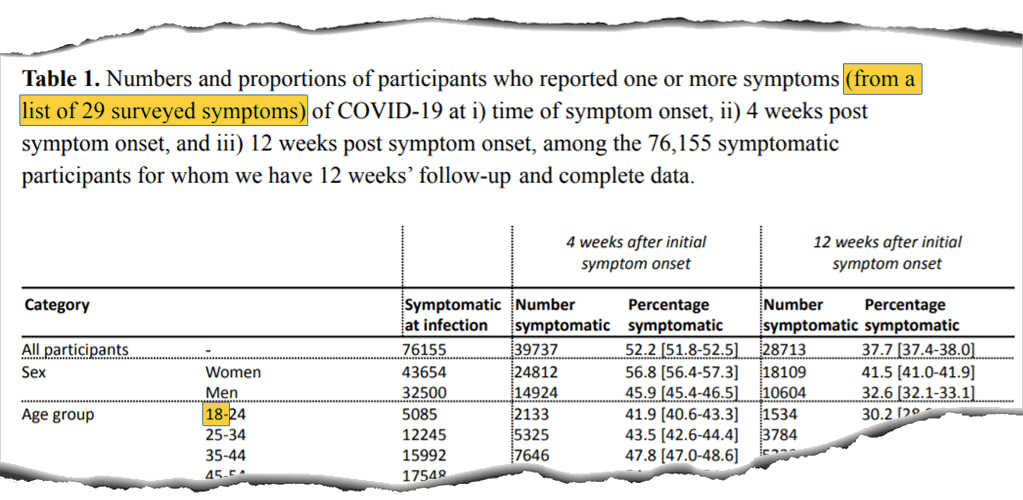 So, what does the REACT-1 study, which examined more than half a million people, show? This study is limited to the 18 and over in England. It examined 29 symptoms, and showed 1 in 3 people with COVID-19 had symptoms lasting more than 12 weeks. This included young adults.