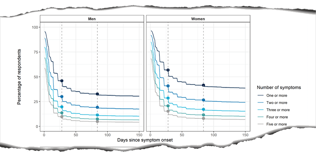 Plots showing persistence of symptoms as a proportion of those who reported symptoms at any time. | Imperial College London