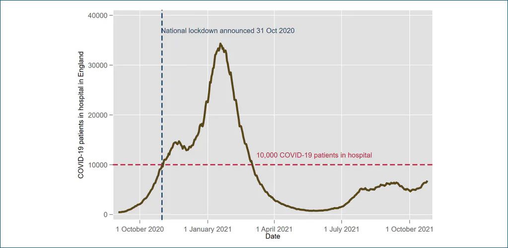 Patients in hospital with COVID in England, October 2020-October 2021.