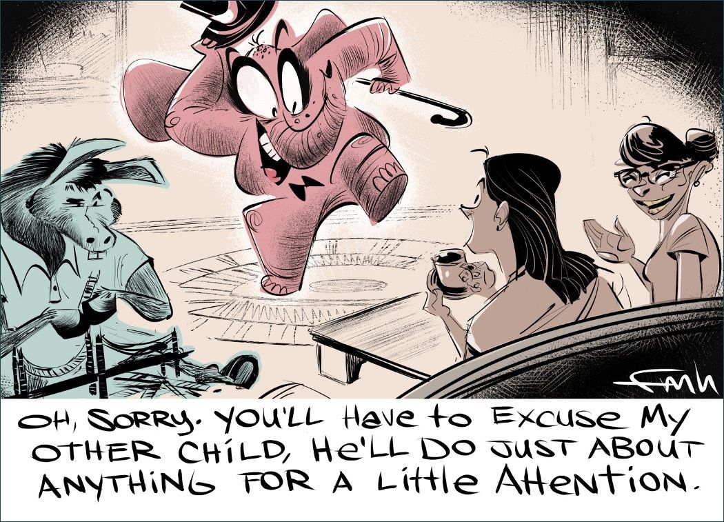 Maybe it’s the Trump effect but the GOP has now become the “Look at me! Look at me!” party on Capitol Hill. — Today’s Political Cartoon by FM Hansen.