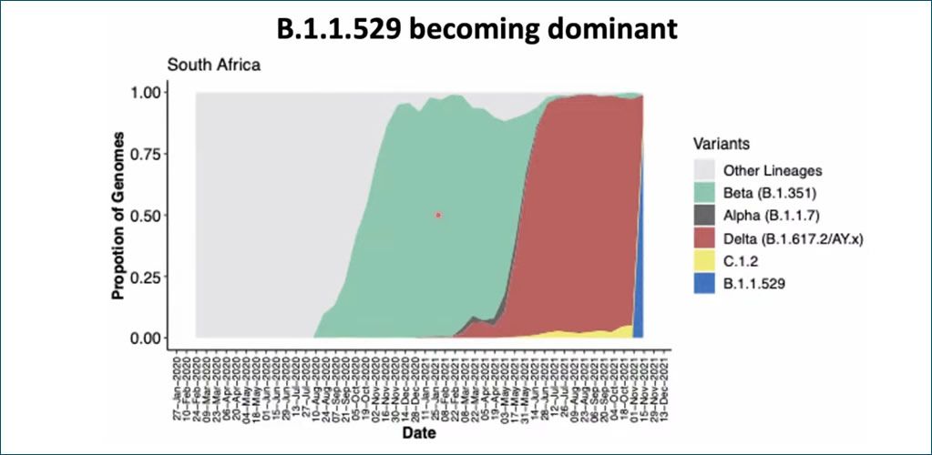 It is worth remembering that Delta took 6 weeks or more to gain dominance in most regions. Here, we are seeing a variant that has likely been detected early (given the signature on PCR tests) that has rapidly gone from 0% to 40-60% in a matter of weeks (2 weeks or so). That is very worrying.