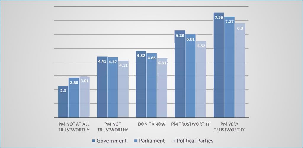 A new survey shows a strong link between trusting the prime minister and trusting the government, Parliament and political parties.
