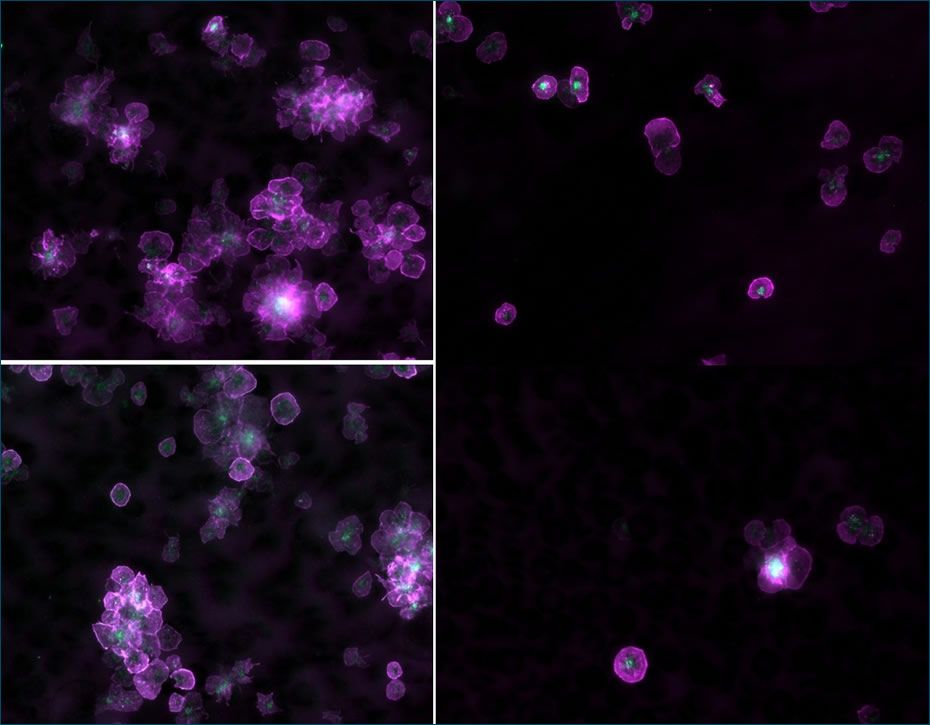 Her fluorescent microscopy (left) showed very hyperactivated sticky platelets. Mine are on the right for comparison. She also had microclots and evidence of endothelial damage (but latter not severe).