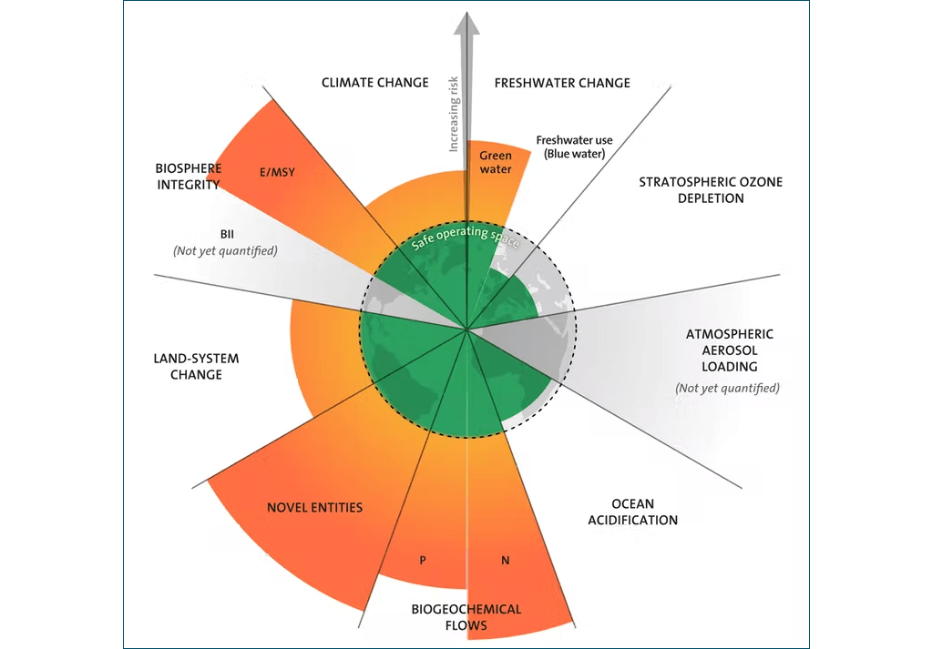 The planetary boundaries framework – a concept that scientists first discussed in 2009 – identified nine processes that have remained remarkably steady in the Earth system over the last 11,700 years. These include a relatively stable global climate and an intact biosphere that have allowed civilisations based on agriculture to thrive. Researchers proposed that each of these processes has a boundary that, once crossed, puts the Earth system, or substantial components of it, at risk of upset.