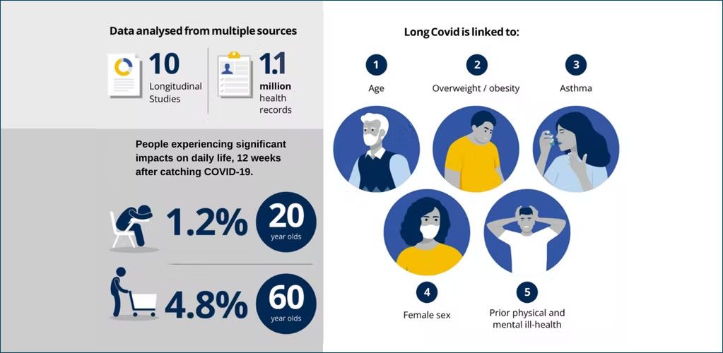 We also found that a range of other factors is associated with a heightened risk of developing long COVID. For instance, being female, poorer pre-pandemic mental health and overall health, obesity and having asthma were also identified as risk factors in both the long-term studies and electronic health records.