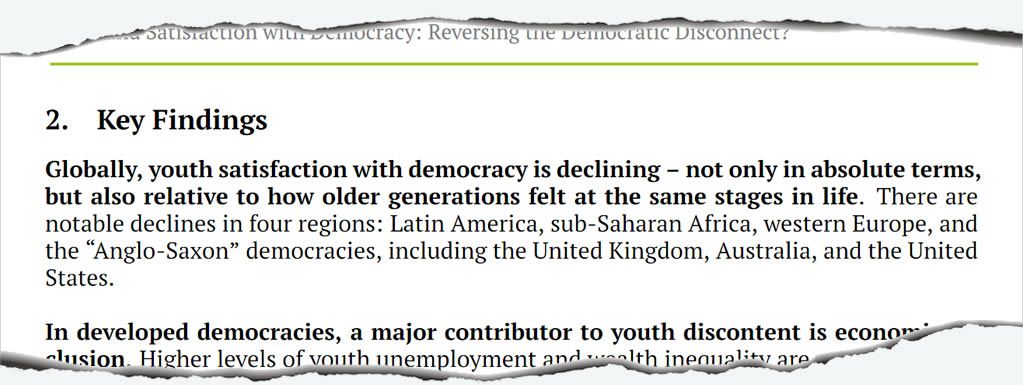 Youth and Satisfaction with Democracy. | CREDIT: BENNETT INSTITUTE FOR PUBLIC POLICY
