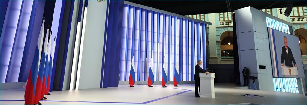 Vladimir Putin delivering his presidential address to the Federal Assembly of Russia. | CREDIT: KREMLIN