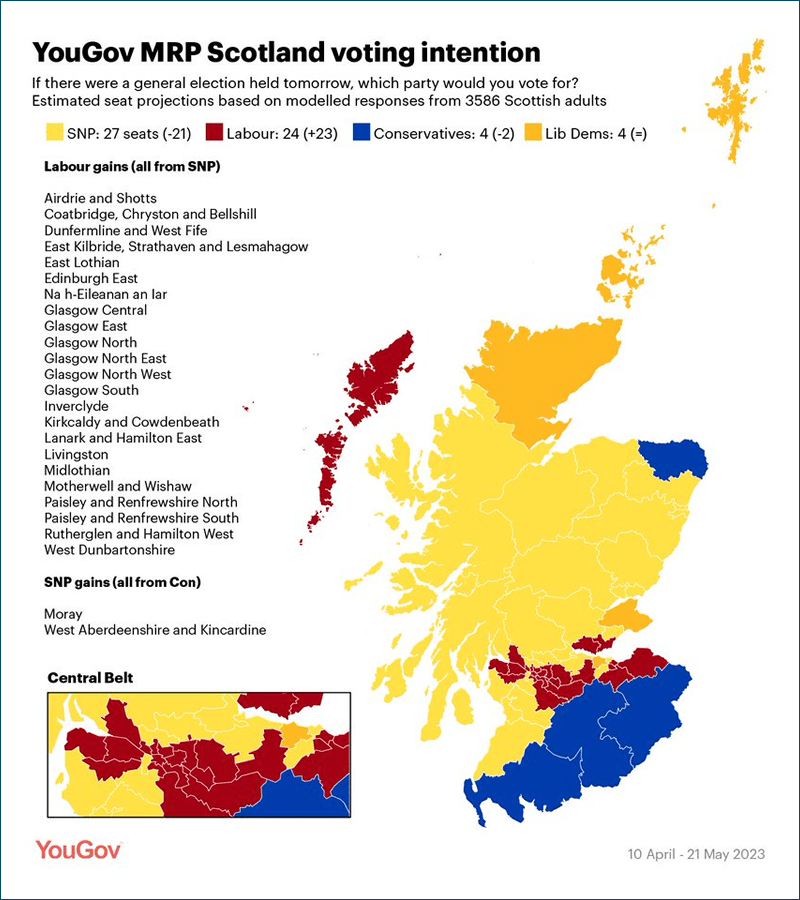 Scotland MRP: SNP could fall to just 27 seats if an election were held tomorrow.