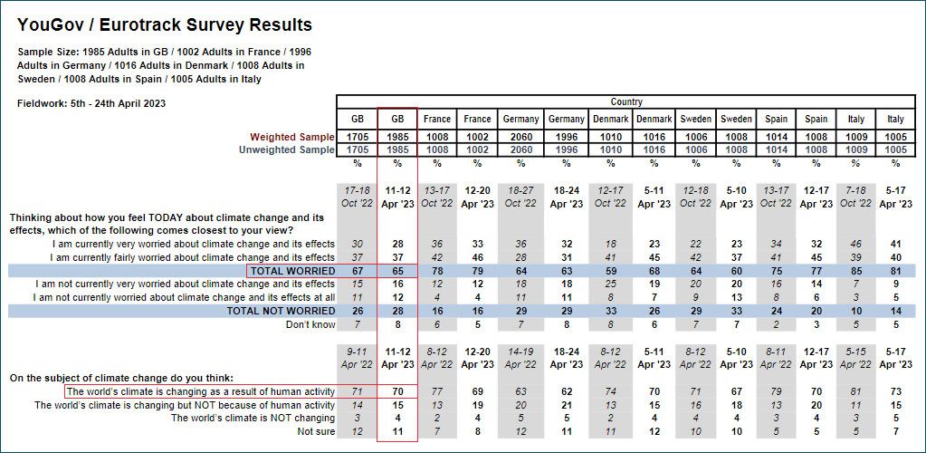 65% of British people surveyed worried about climate breakdown. | CREDIT: YOUGOV