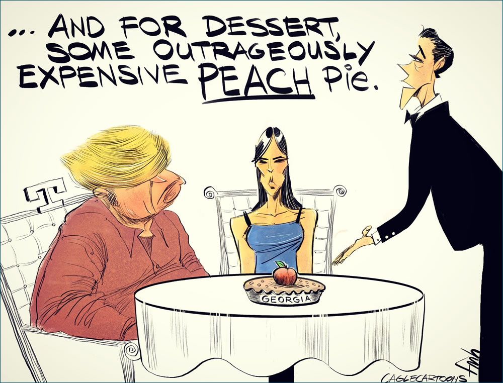 Former President Donald Trump has finally been indicted for his attempt to interfere with the Presidential Election results in Georgia in 2020. | Today’s Political Cartoon by FM Hansen.