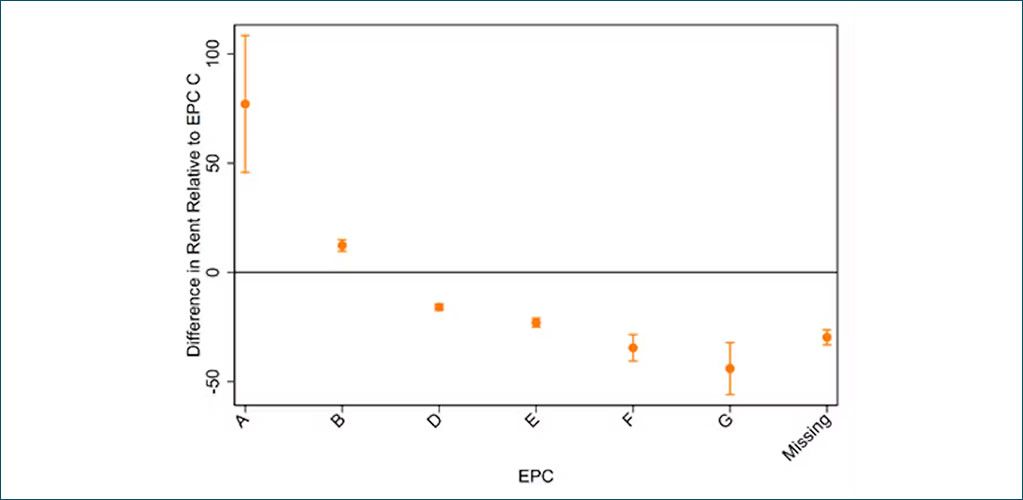 How average rents differ depending on EPC rating, compared to a rating of C.