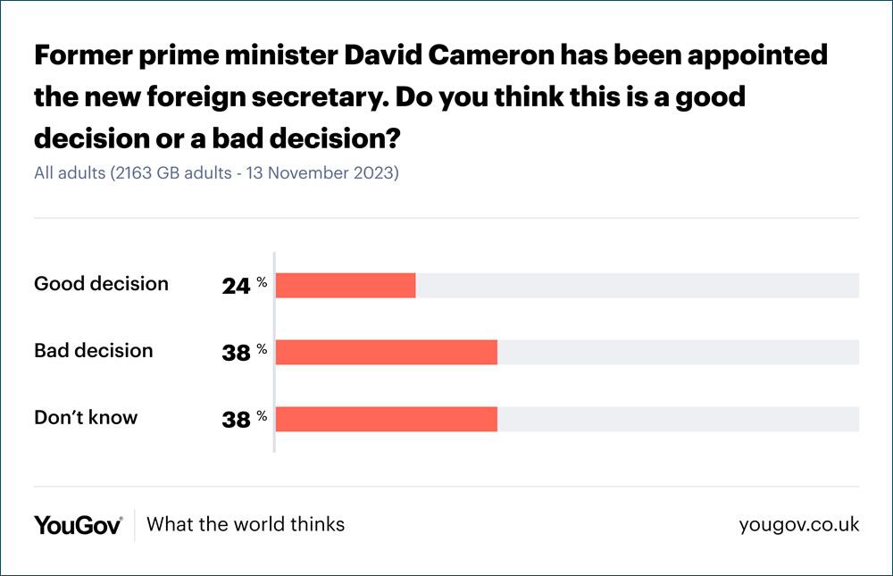 When asked about David Cameron’s return as foreign secretary, just 24% of the public believe it was a good decision.