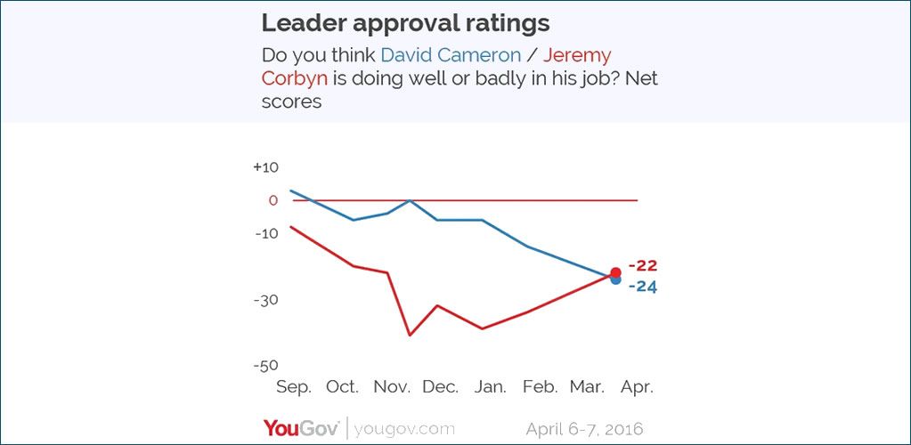 David Cameron had a lower approval rating than Jeremy Corbyn in April 2016.
