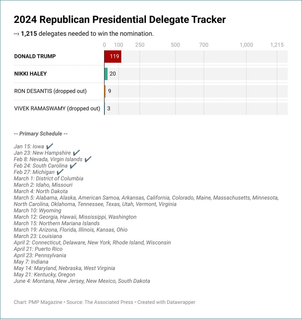 Ahead of the South Carolina primary on February 24, other polling suggested that 57% of Republican voters believe Biden’s presidency is illegitimate, and 85% of those voters support Trump. Some 70% of those who believe Biden won the election “fair and square” support Haley.