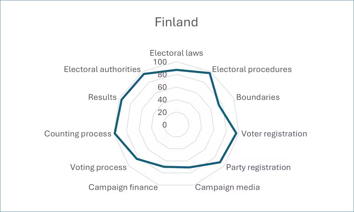 Election quality is the highest in Finland (see graphic) where electoral laws are fair to smaller parties, voter registration is seamless and electoral authorities are professional.