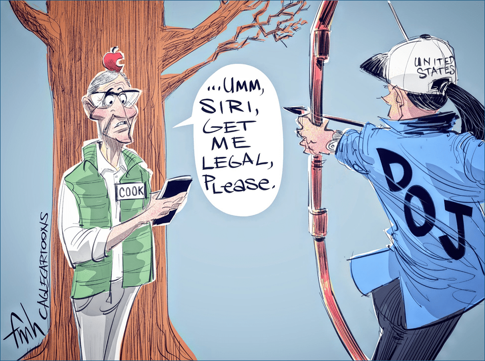 DOJ’s antitrust lawsuit against Apple: there is definitely some stifling of competition going on... | Today’s Political Cartoon by FM Hansen.