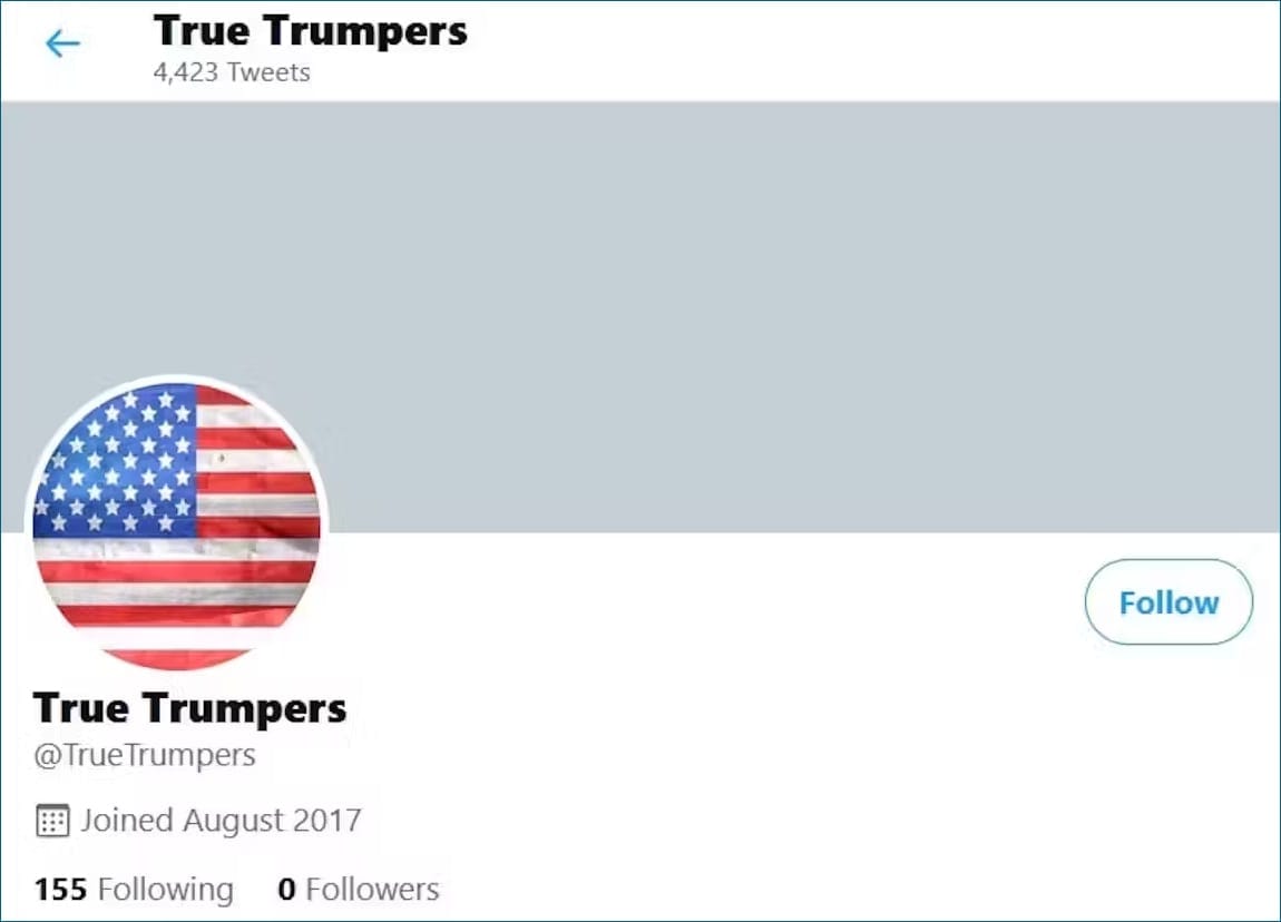 To take one example, we examined the activity of an account named “True Trumpers” on Twitter.