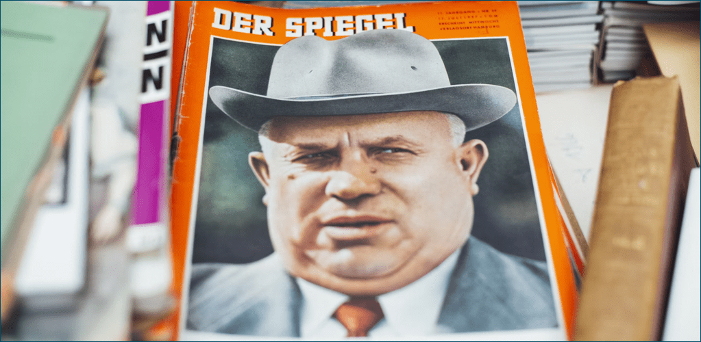 — Khrushchev on the front page of German magazine Der Spiegel, 17-Jul-1957.