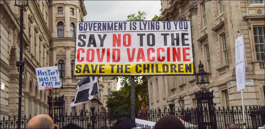 There were also campaigns promoting conspiracy theories about the origin of the virus, such as suggesting a deliberate release of an engineered virus, the purposes of the public health measures and the effects of the vaccine.