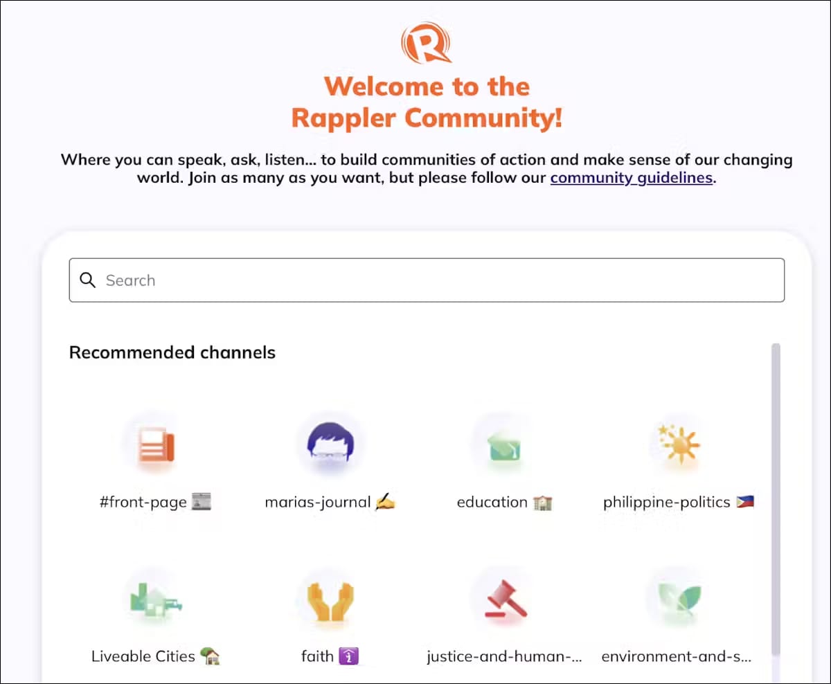 — Rappler Communities is a social network in the Philippines that combines journalism, community and technology.