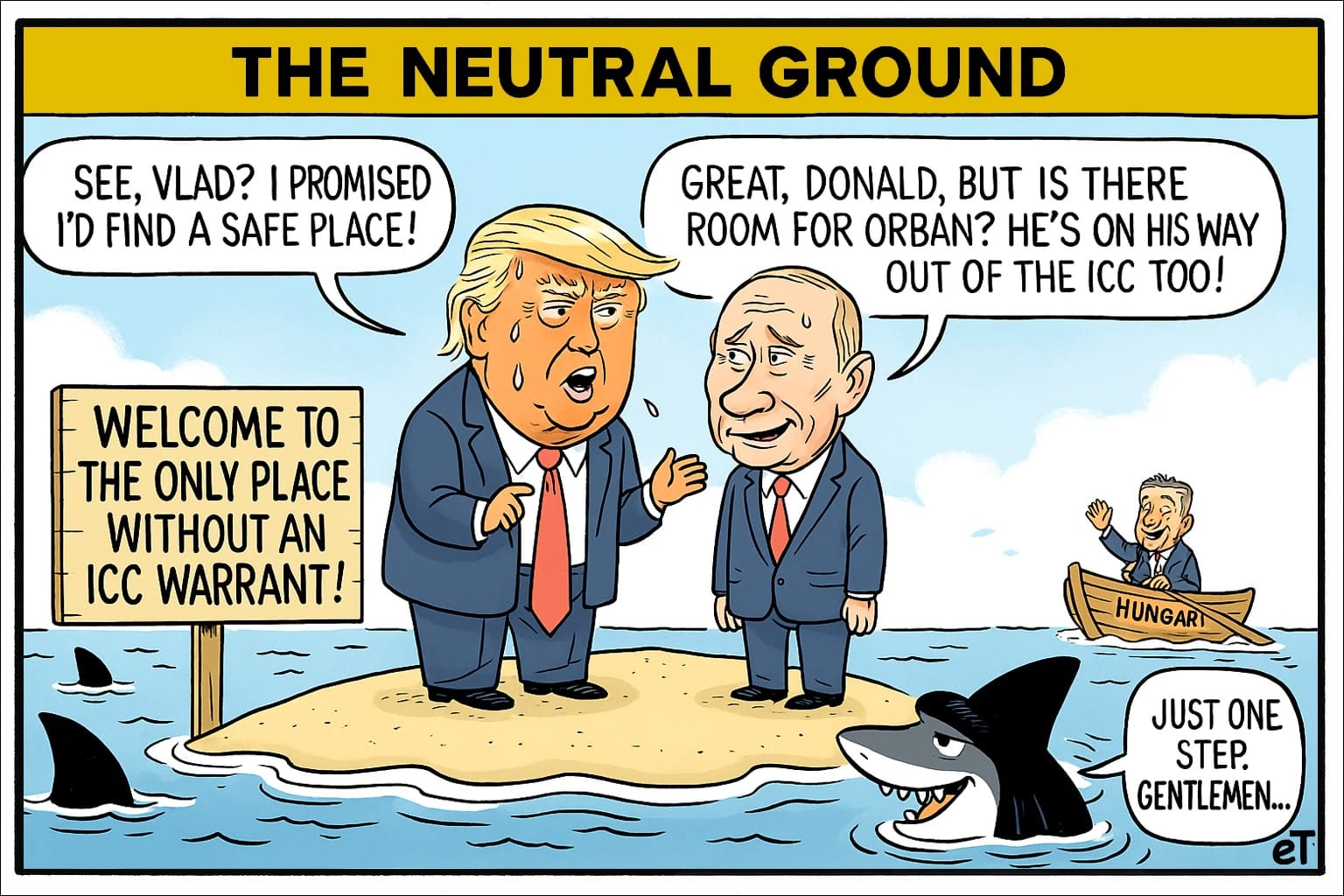 Trump plans summit with Putin despite ICC warrant, narrowing venue options as Europe’s rejection underscores Putin’s deepening diplomatic isolation under legal pressure. | Today’s Political Cartoon.