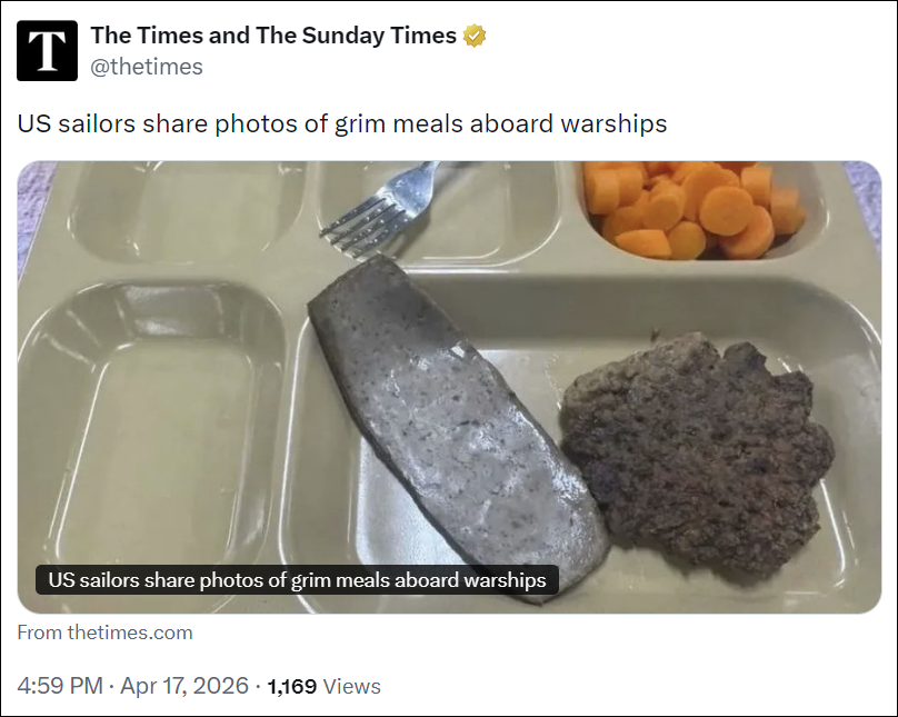 US sailors share photos of grim meals aboard warships | THE TIMES